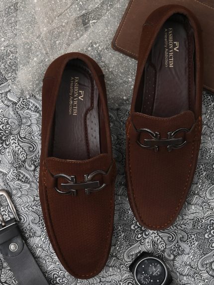 Men Brown Textured Suede Loafers