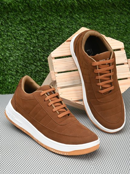 Men Brown Solid Lightweight Suede Sneakers