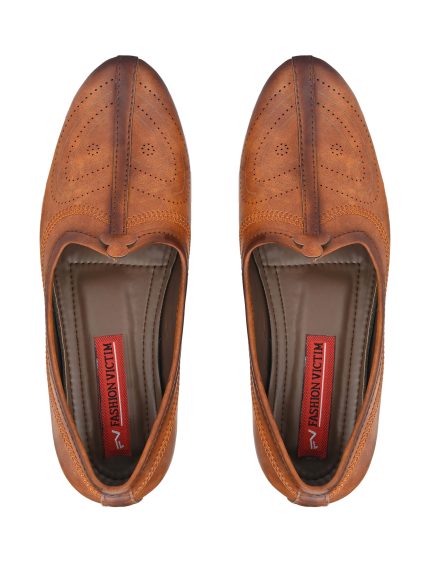 Men Tan Brown Perforations Mojaris